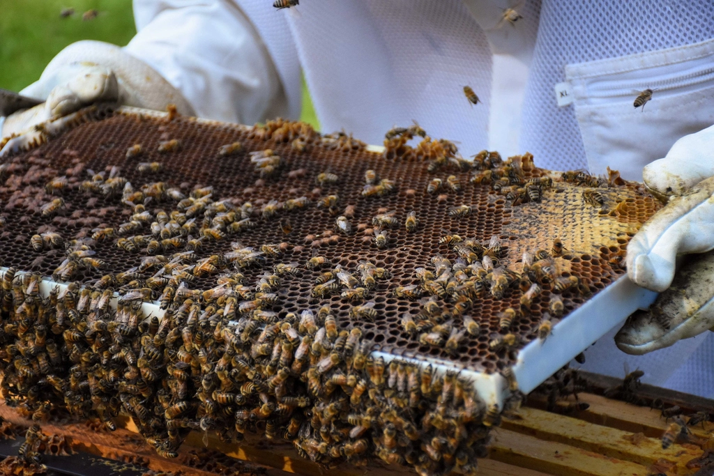 Honeybee frame, honey farm, beekeeping” af U.S. Department of Agriculture/ CC0 1.0