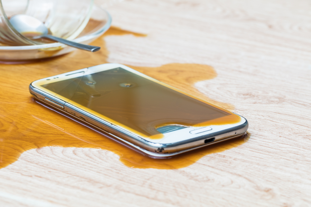 Sprøjt aldrig væske direkte på telefonen, da det kan føre til kortslutning eller korrosion. Selv vandafvisende modeller kan tage skade af for meget fugt.