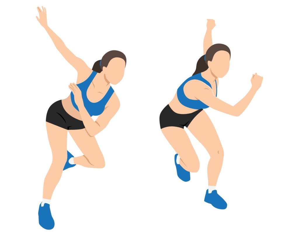 Øvelsen kan udføres uden hop ved at sænke tempoet og føre ét knæ frem ad gangen.