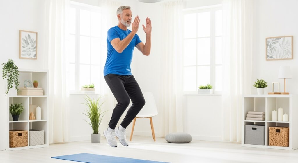 En mere skånsom udgave er at gå fødderne frem og tilbage i stedet for at hoppe.